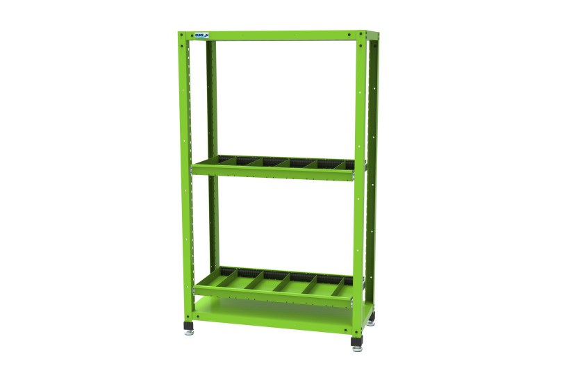 1. 단당하중 100Kg으로 견고하게 제작 되었으며, 선반(슬라이드 선반)을 필요에따라 50mm간격으로 조정이 가능한 제품입니다.